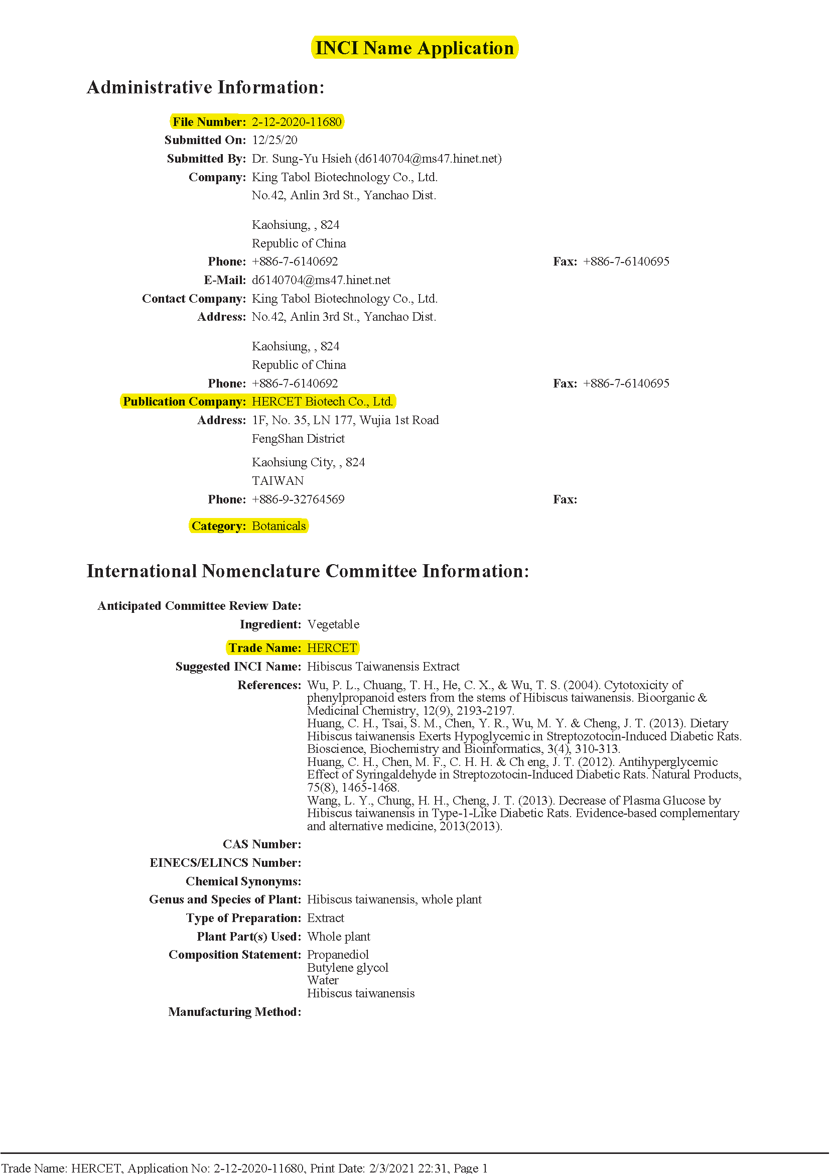 通過PCPC登記註冊國際化妝品成分命名(INCI name)