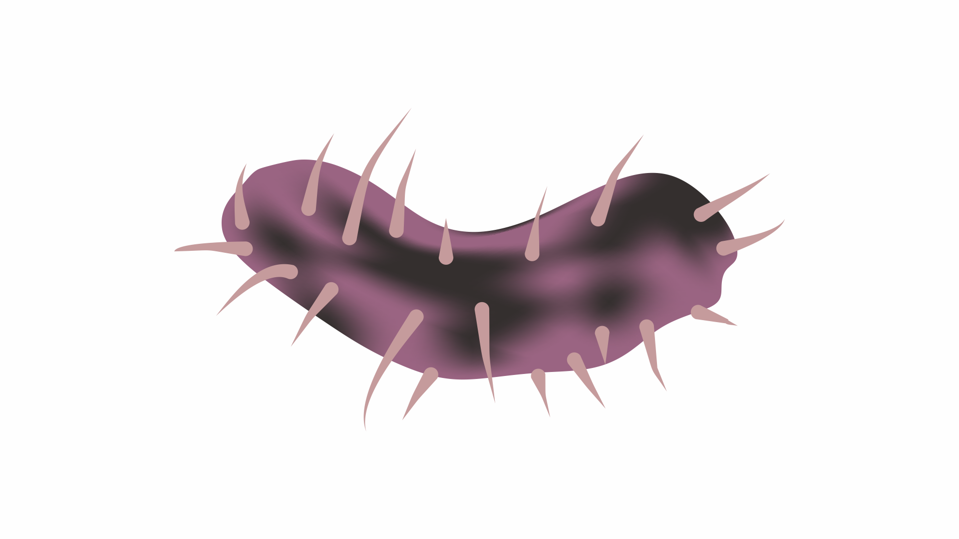 幽門螺旋桿菌是一種革蘭氏陰性的螺旋狀桿菌,具有鞭毛可在胃黏膜中螺旋狀前進,它能分泌一種酵素,將尿素轉化成鹼性的氨,以中和強烈的胃酸,使其能生存於有強酸的胃中,並且還會分泌不同的消化酵素,破壞胃粘膜之表皮細胞,造成胃炎。